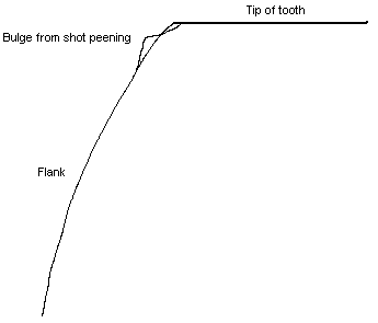 It don make sense to hit the tooth flank, the critical area that will help you to increase your fatigue life is the tooth root not the flank.