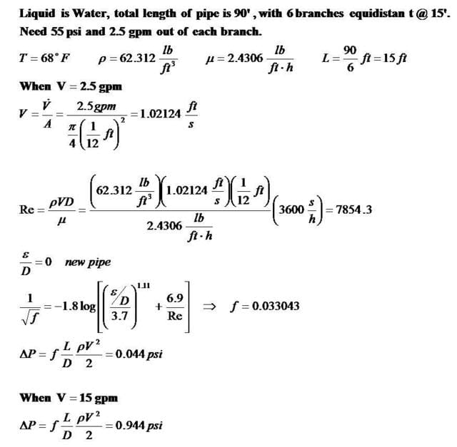 Line A is a 1" line that has 6 branches coming off of it. Each branch must have an output of 2.5 GPM, 55 PSI.