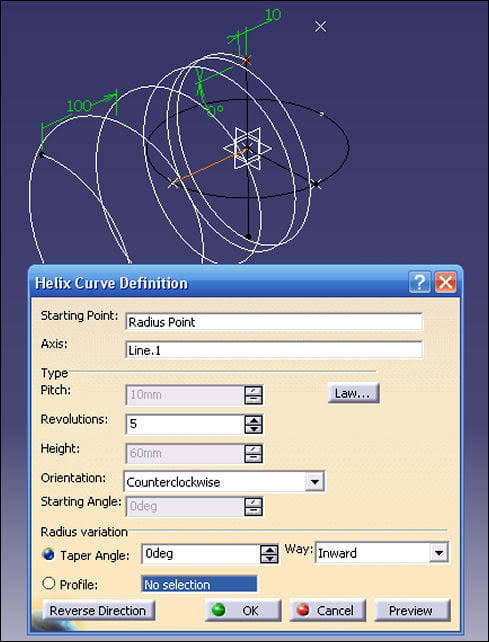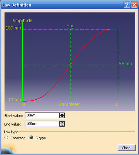Here's a Variable Pitch 'S' Law case with the pitch after one turn being 10mm, and at the last turn equal to 100mm.