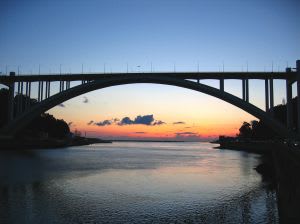 Concrete open spandrel deck arch bridge. Total lenght: 493 m, arch span: 270 m, arch rise: 52 m, deck height: 70 m