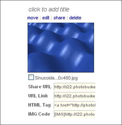 Once a picture is on Photobucket it will look like this in the album.