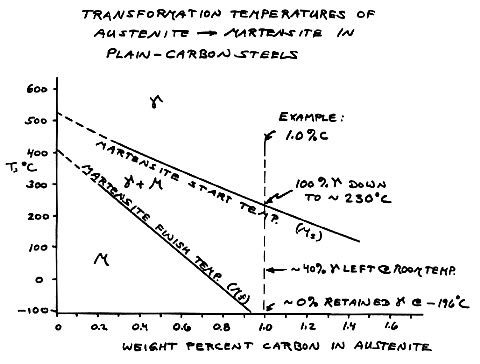 In the Q&T of carbon steels, such as my favorite 4130, I understand that the it is best to quench such that you have arrived at a full martensite structure and then the martensite is tempered to the desired hardness. BUT what is the result if we do not arrive at the full martensite condition? How will the remaining austenite effect acheiveable strength, hardness, ductility and toughness?