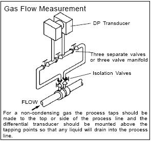 Gauges and electronic transmitters have temperature limits. For gases, the meter is typically mounted above the line, so any condensation will drip back into the process pipe, and not fill the impulse tubing. At 350°F, the transmitter should be a couple feet from the pipe to minimize the conduction of heat to the meter body through the impulse piping.
