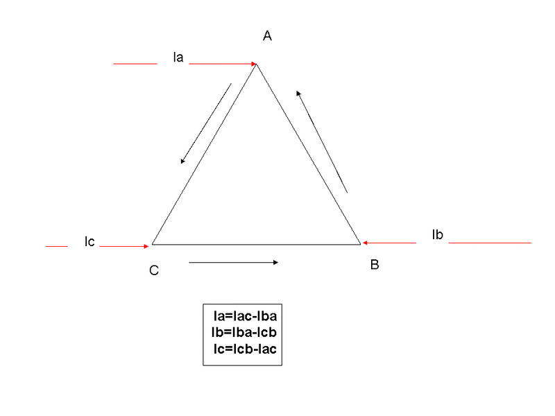 Ia=Iac-Iba ; Ib=Iba-Icb ; Ic=Icb-Iac