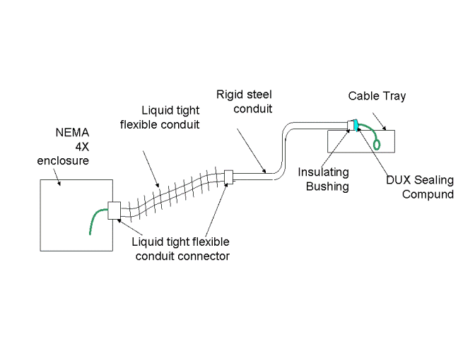That means in order to maintain NEMA 4X rating one has to connect the cable by means of a flexible liquid tight conduit or galvanized rigid steel conduit c/w suitable fitting.