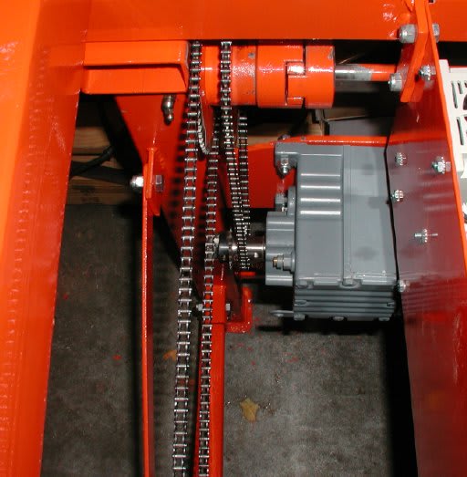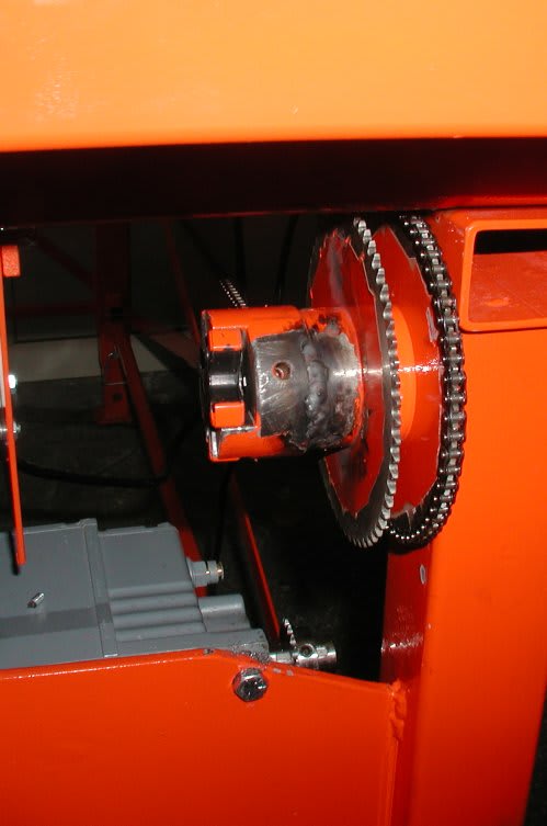 During further testing the first driven sprocket was found turning while the secondary sprocket feeding the left side wasn't! It's hard to find sprockets with key-ways for 1/2" shafts. So I drilled the two gears and tied them together with roll pins.