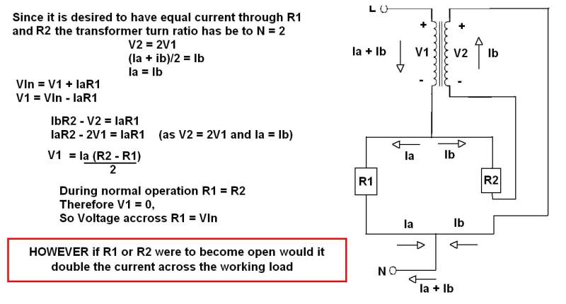 BUT IF ONE OF THE LAODS R1 or R2 were to become open would it double the current trough the working load..