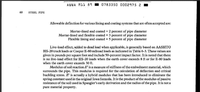 Regarding what AWWA M11 really says, please take a look to the manual under "6.2.deflection determination":