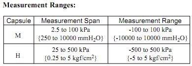 Yokogawa's remote seal guide cites a minimum span 250mm (H2O) for the M capsule: