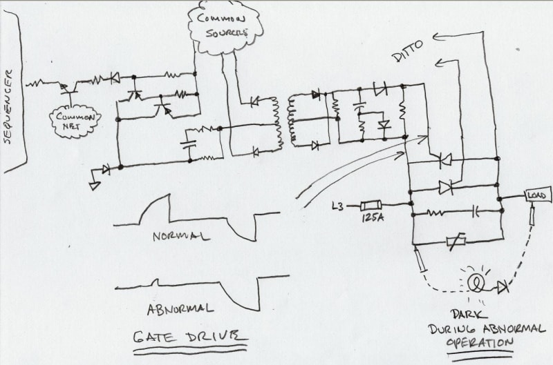 I was also able to catch the gate drive as seen across the SCRs during an event. (See sketch)