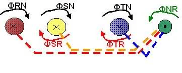 FiR=KRS*(IR+IS)+KRT*(IR+IT)+KRN*IR+KNR*IN where KRS=2/10^4*LN(DRS/reR) and so on.