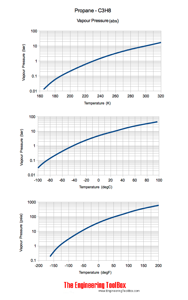 The vapor pressure stated for propane at 100°F is comparable to a value from the graph here: