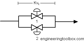 The resulting Kv or Cv if two valves are installed in parallel can be calculated as