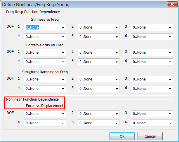 Does anyone can tell me how can be a non-linear (Force vs displ.) modeled in Nx Nastran 8.0? I need to include non linear spring in a 106 (or 601) simulation, and I know that Nastran allow to do that using the PBUSHT card. Unfortunately I didn't find any reference about that.
