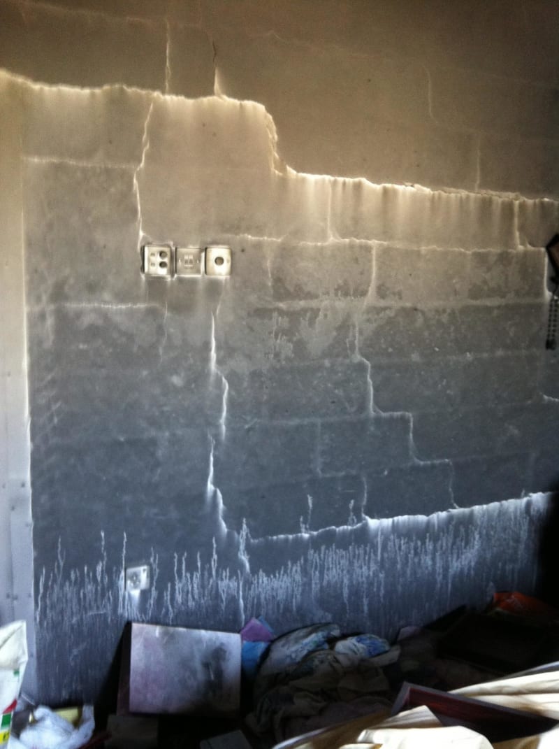 Cracks appears in the plaster at location of mortar joints of bock wall in the photo that was subjected to fire. Is it necessary to demolish the block wall?