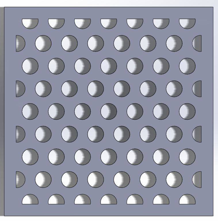 Here is a simplified example. The first picture shows a 3/4" board, 22x22". Within the blue line boundary I will be adding a fill patterns of circle cuts.