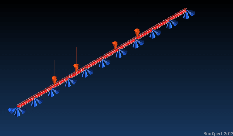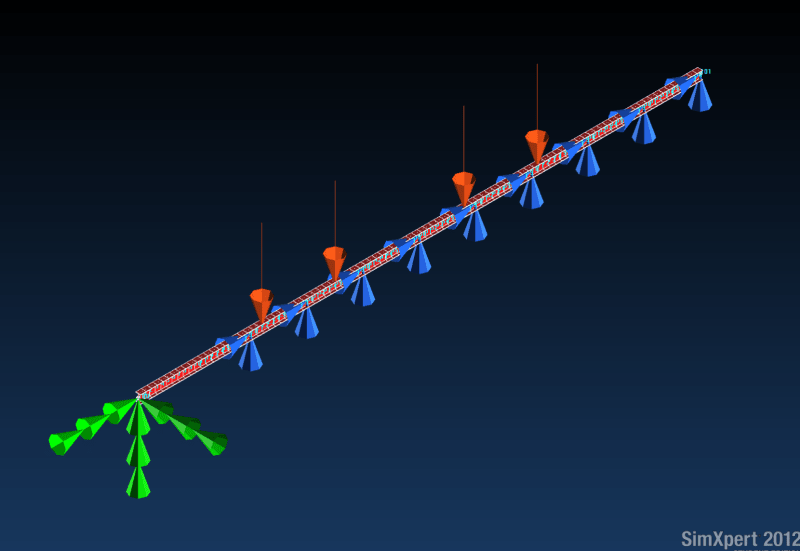 I am trying to calculate the support loads on a 10m I-beam that will be fixed at 1m intervals. There are 4 point loads representing trolleys but I will not be treating them as live loads at this point. I am using SimXpert 2012 to try and model the beam by meshing a straight curve and then using the Beam function in 1D properties. The results are attached ok but when I try and display results as a FBD to show constraint forces, I get the following message: