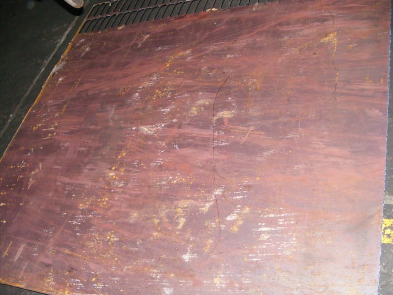 this week, one of our client got the material for an order. he brought 5 plates, of the same grade. 3 of them were with this red finish, and 2 were normal grey colored. of course I was suffering to work with the red plates. when i cut the greys, I didn't change anything in technology tables, either feed or pressure, every single piece fall out from table, and they had a very nice cutting edge.