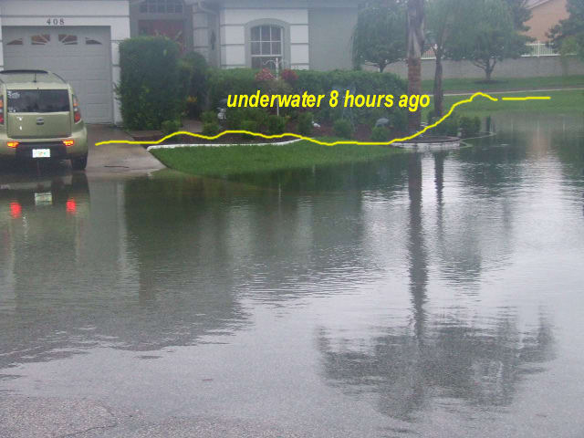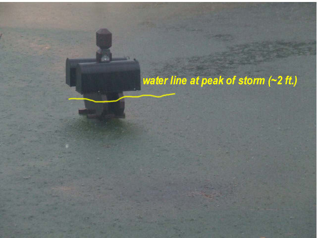 Thanks for that posting as it gives me some much needed perspective. The flooding, at the street level, is near 20~24" as best I could measure it from ground level near my mailbox and close to the storm drain grate.