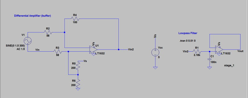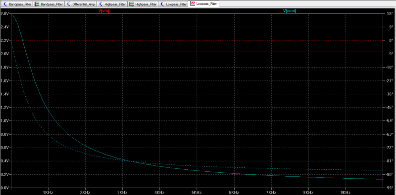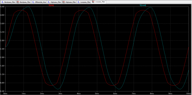 Here is the schematic of my low-pass filter which is off-phase and not properly amplified. Also there is a little bit of noise: