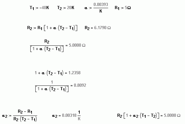 That said, the equation CANNOT be used with arbitrary temperature differences. The alpha is for a POSITIVE temperature coefficient. Therefore, the only way to do it in whatever calculator you're using is to use a different temperature coefficient, 0.00318/ºC