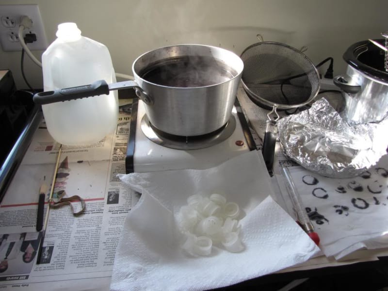 Sorry for the confusion I had a lot to put out there and it got a little mushy. When referring to hot water I was thinking of a way to dye and clean at the same time. So a method that could filter hot wax from water but admittedly I sort of left out too many details.