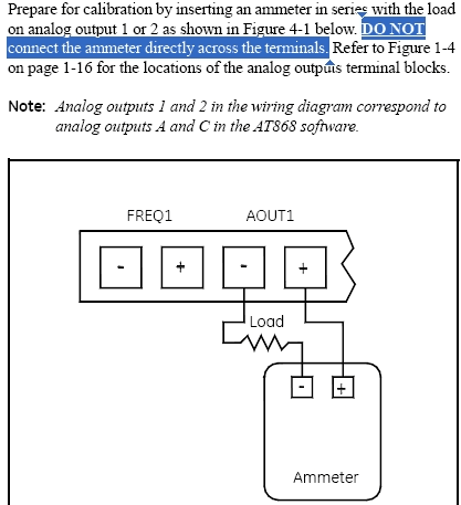 For reasons beyond me, there is a warning about not connecting an ammeter directly across the analog output terminals. I can't imagine, why one shouldn't. How can current meter load a current circuit?