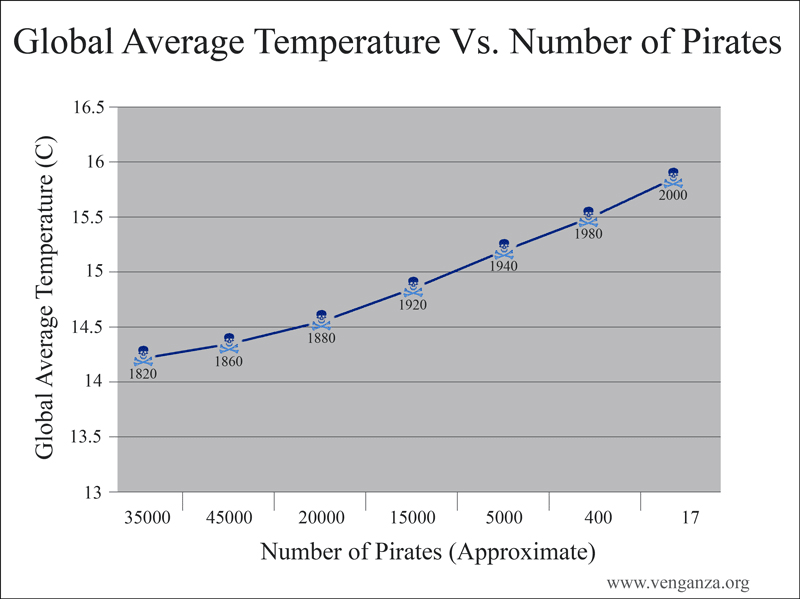 Now sloppy graphing aside, one can show an inverse relationship between the number of pirates vs global warming. One can even tune a computer model to show that, and get a correlation between the two that's not terrible. What you can't do, is use that model to prove that one caused the other, when there may be entirely different factors in play that could be causing both.