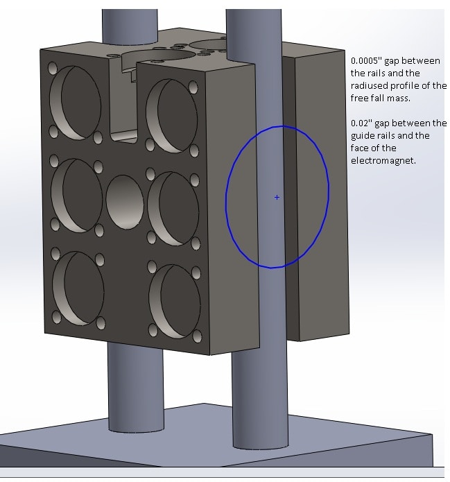 I am worried about the interaction of the guide rail with the free fall mass and the electromagnets.