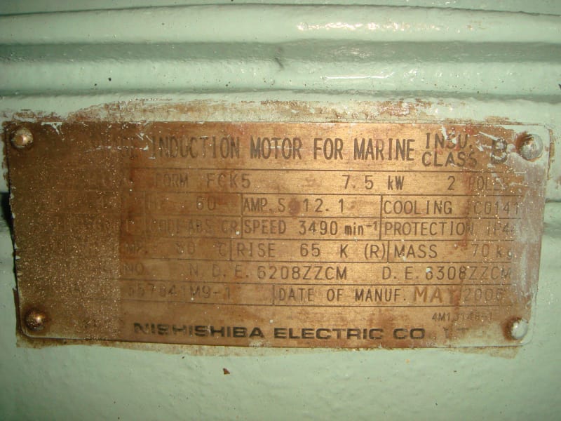 Motor: 7.5KW, 2 poles, 3600rpm