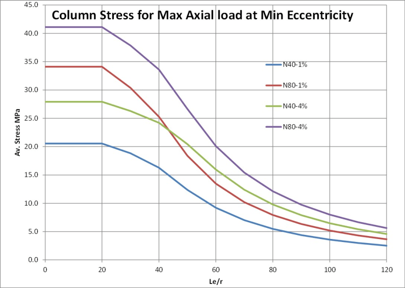 - Applying the same method used by asixth in his last post, I get the stresses at maximum design load shown in the attached graph. For low slenderness ratios the column has a substantially higher design load, but for high slenderness the wall has a much higher design load. Given the lower reinforcement requirement, this doesn't make sense.