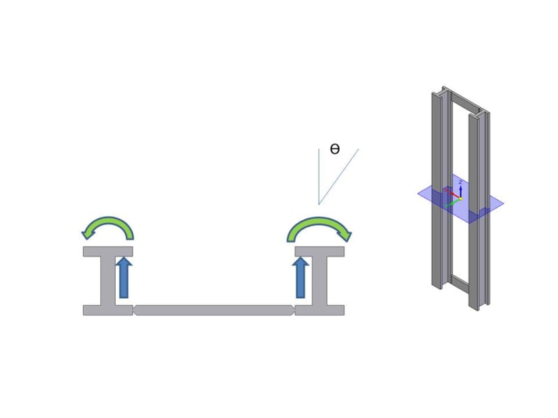 Let’s quit assuming.... If you can’t describe your problem so an experienced engineer can start to understand it, it will be a tough haul to ever solve it. Put some loads, some real dimensions, member sizes, etc. on that CAD sketch, and tell us what it is. It looks like the vertical guide rails (mast?) on a fork lift to me, with the forks points in the Y direction. Ask yourself what info. you need to start to solve this problem, and get it on your sketch. You would be surprised how this type of info. influences an experienced engineer in his first impressions and judgements on the problem. Your tie bars are only spacers, at that back flange, they will not help you much/any with the torsional problem. Put top and bottom (horiz.) plates at least as deep as the I-bms. are, as if a single cap pl. and single base pl. all the way across the mast. This will tie the two rails together torsionally and limit their rotation, at the ends. What? Me impatient? We both just want him to put his thinking cap on, and quit keeping secrets. This isn’t a game of 20 questions.