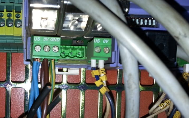 On the newer lasers we use networked PLC nodes. This saves a lot of wiring as only a power and data lead needs to be run around the machine. I've been having issues with this, specifically the power bus. Barley getting 18 volts at the end of the line w 24 volts in. This really freaks out the control. the solution is simple-