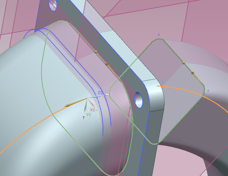 Sweeping along an arc. Two different cross sections. I know this has something to do with the vector alignment of the initial sketch, but don't remember how to correct this problem. Any help is appreciated. Not supposed to fold in onto itself like that.