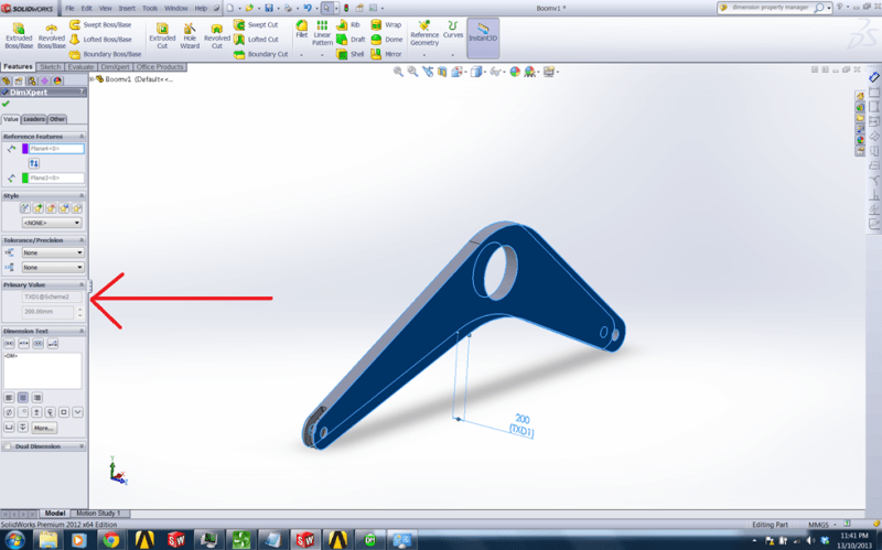 I'm trying to do an optimisation analysis in ANSYS with a Solidworks geometry. To get ANSYS to recognise the dimension as a parametric I have to preface the primary value with DS (or whatever I set it to) which isn't a problem in sketches and whatnot, however I cannot seem to change the primary value name of an extrusion.