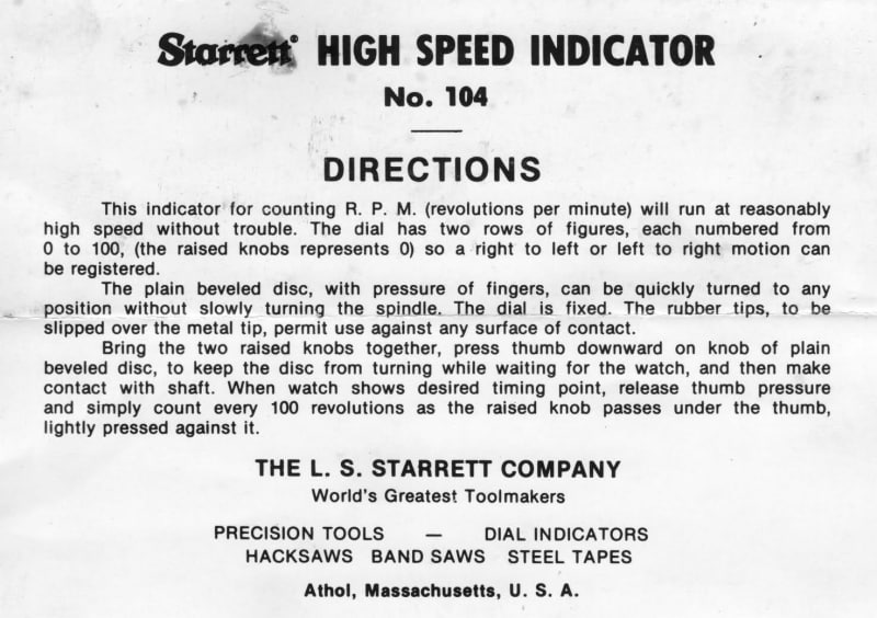 RE: Old contact type Starrett hand-held tachometer