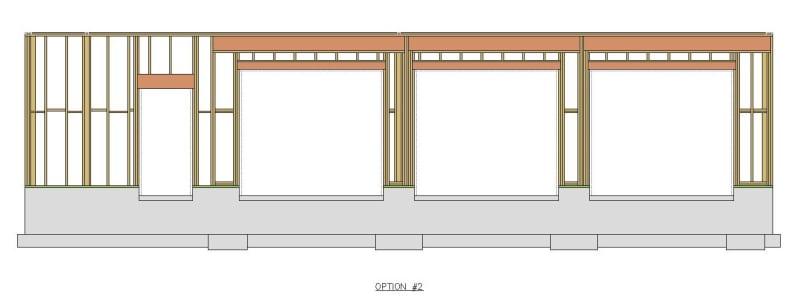 2) You have a fairly substantial wall on the left, why don't you design it as the only shear wall OR combined w/ only one garage portal frame? Otherwise I think the Builder is going question the sanity of what you are now showing. It is too complicated and so many studs, you might as well make it out of solid wood.