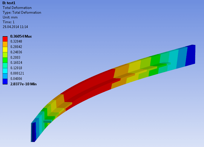The deflection on back plate of the gate is about 15 mm. The image shows a magnification factor to the deflection of about 30.