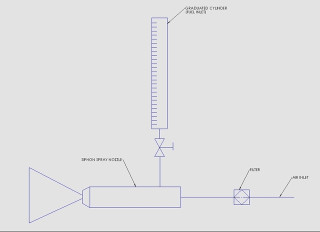 A spray nozzle is placed into a manifold so that the fuel can be drawn by the air. This will create atomization and mixture with air and diesel. Air is the driving energy to draw the diesel fuel into the system. In other word, there is only vacuum pressure in the fuel line.