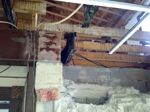 I was doing some research and came across this great forum, so I'm hoping I can get some technical assistance from this knowledgeable group. I have a relative who is completely renovating a home and has asked for some assistance with some structural concerns. It's a two-story home and has a VERY unconventional flooring system. The lower level exterior walls are 8" thick concrete which support nine W12x26 girders and clear span from front to rear of the house (22'3"). The girders support four M10x7.5 beams which run the width of the house and then floor joist on top of the M10x7.5 beams. Tributary area for a girder is 171 sqft. In one of the girders a 5'9" section of it was removed for a fireplace and the cut ends of the girder are supported by the fireplace. My uncle thought the fireplace was constructed around the girder and the girder continued through the fireplace, not the case. They don't want a column to support the cut girder, because the column would be located in the center of a bedroom.