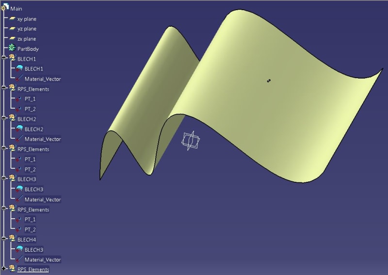Sub CATMain() 'start by declaring the selection Dim oSel Set oSel = CATIA.ActiveDocument.Selection 'Create an array for CATParts ReDim strArray(0) strArray(0)="Part" osel.Search "CATPrtSearch.PartFeature,all" 'Count the number of selected parts iCount = oSel.Count 'Create a For Next loop to cycle through all selected parts 'Isn't vb scripting fun? For i= 1 to iCount Dim myObject2 Set myObject2 = oSel.Item(i).value 'Search only the selected objects for the object named "Part_Geometry" oSel.Search "Name=Part_Geometry,sel" 'now we take all the Part_Geometry objects found and copy them ReDim copies(iCount) ReDim names(iCount) For k=1 to iCount Set copies(k)=oSel.Item(k).Value Set names(k)=oSel.Item(k).Value.parent.parent.name Set copies(k).name.value=names(k).value oSel.Add copies(k) oSel.Copy 'close the loops Next 'k Next 'i 'Now use CATIA scripting basics to create a new part Dim part2 Set part2 = CATIA.Documents.Add("CATPart") Dim partDocument2 'As PartDocument 'rename the new part part2.Product.PartNumber = "Hauptadapter" 'optional step: create a new geometrical set and rename it 'Dim GSet1 'As HybridBody 'Set GSet1 = part2.part.HybridBodies.Add () 'GSet1.Name = "Flachen" 'set the newly create part to the active document Set partDocument2= CATIA.ActiveDocument Dim ActSel 'As Selection Set ActSel=partDocument2.Selection ActSel.Add partDocument2.Part 'GSet1 'paste special the Part_Geometry objects from the orginial file and paste as result without link ActSel.PasteSpecial("CATPrtResultWithOutLink" ) 'clear the selection ActSel.Clear End SubBut I can't get copied GeoSets and surfaces having their parents name.... Maybe you could review this new code and give me some comments / hints?