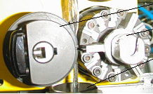 The first component is a wheel that allows blades to be insert or removed from the unit.