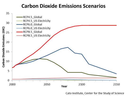 However the great news is that you've got some dodgy numbers. I haven't seen a 10 billion projection for 2050. The sensitivity to CO2 in the more recent papers seems to be edging down to the value we've always measured in the lab, about 1-1.3 deg C per doubling, far short of the Chicken Little worst case scenarios beloved of the media and the IPCC and politicians, and indeed far short of even the average results from the misleading models.