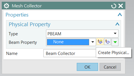 3.- Under BEAM PROPERTY click on CREATE PHYSICAL.