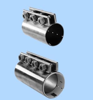 these "lower pressure" couplings use 3 to 6 bolts to clamp the rubber sleeve to the tubing.