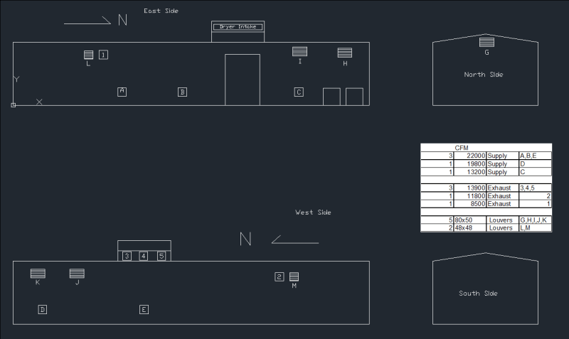 @mintjuliep - We already have the fans as shown on the CAD drawing, they are a long ways from being enough, which is why we are adding more. I understand the KISS principle, but at the same time, it seems like such a waste to have a 45,000 cfm exhaust fan constantly running that is pulling air in from outside, as well as multiple exhaust fans pulling out the same volume.