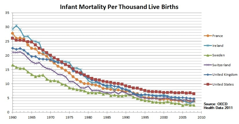 1) Right, that’s why all universal healthcare systems have no good doctors and the quality of care is poor…and then there’s reality. Quality of Care Rank: US – 5th out of 11, UK – 1st. (source)