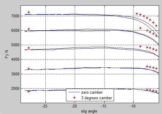 shows raw F&M data for a tire at various Fzs, with 0 and 3 degrees of inclination angle.