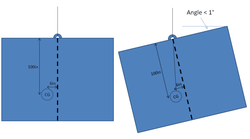 Let's say I have a large structure that weights 100k pounds that is hung from a simple support at the very center (x,y = 0,0). The CG is offset by a few inches, say (6,2). I need the structure to hang within 1 degree of flat.