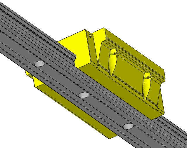 In order to gain some height and have a good surface I was thinking about putting them on IPN or HEB profiles; since the rail holes is centered this would interfere with the profile web, so an intermediate part can be included (pink part):
